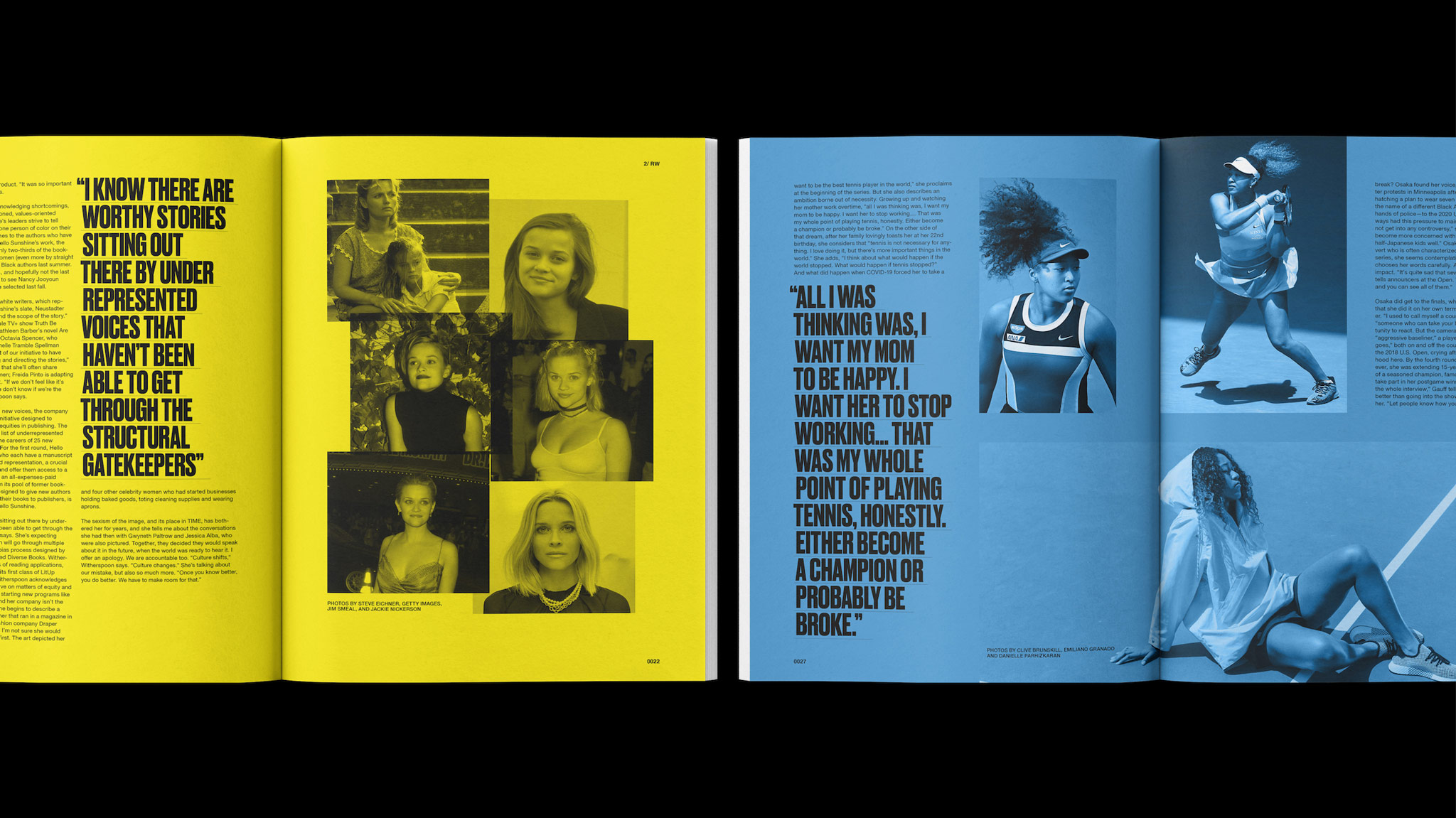 all the positive steps being made to forge change. The visual identity of the issue is bold